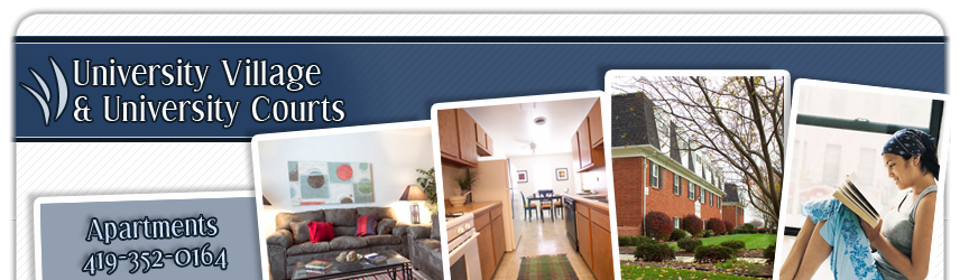 Located a short block south of campus, University Village and University Courts apartments provide convenient and affordable off-campus housing for BGSU students and faculty alike. It's a few minutes walk to the Student Recreation Center, the Library, the Musical Arts Center or choose the BGSU shuttle service with a stop on the corner. Shopping, restaurants, and other services are close by in the neighborhood. University Village offers spacious two bedroom apartments designed for shared occupancy with generous closet and storage space, excellent sound control, and private balconies. Architecturally pleasing buildings are situated on well landscaped grounds with a pond and green space for resident enjoyment. University Courts apartments for rent in Bowling Green, Ohio provides a quiet, cozy environment with buildings wrapped around two charming courtyards. One and two bedroom apartments with a choice of three floor plans are priced to accommodate single or shared occupancy. Contact us to set up an appointment! |
